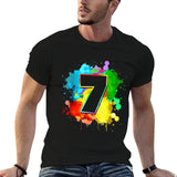7th Birthday Colorful Paint Splashes 7 Year Old Tie Dye Bday Trendy Pattern T-Shirt