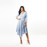 Not your ordinary shirt dress, this asymmetric hem wrap dress combines feminity with timeless classiness in a modern way.