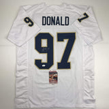 Autographed/Signed Aaron Donald Pittsburgh White College Football Jersey JSA COA