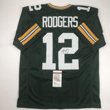 Autographed/Signed Aaron Rodgers Green Bay Green Football Jersey JSA COA