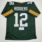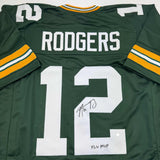 Autographed/Signed Aaron Rodgers "XLV MVP" Green Bay Green Football Jersey Steiner COA