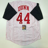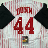 Autographed/Signed Adam Dunn Cincinnati Pinstripe Baseball Jersey JSA COA