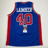 Autographed/Signed Bill Laimbeer Detroit Blue Basketball Jersey JSA COA