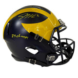 Autographed/Signed Blake Corum "2023 Champs" Michigan Wolverines Full Size FS F/S Speed Replica College Football Helmet Beckett BAS COA