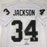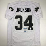 Autographed/Signed Bo Jackson Oakland White Football Jersey Beckett BAS COA
