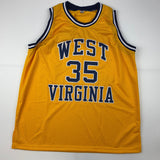 Autographed/Signed Bob Huggins West Virginia Yellow College Basketball Jersey JSA COA