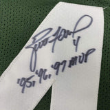 Autographed/Signed Brett Favre 95 96 97 MVP Green Bay Green Football Jersey PSA/DNA COA