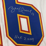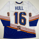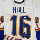 Autographed/Signed Brett Hull HOF 2009 St. Louis Retro White Hockey Jersey JSA COA