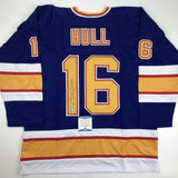 Autographed/Signed Brett Hull St. Louis Blue Hockey Jersey Beckett BAS COA