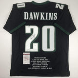 Autographed/Signed Brian Dawkins Philadelphia Black Stat Football Jersey JSA COA