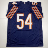 Autographed/Signed Brian Urlacher Chicago Blue Football Jersey Beckett BAS COA