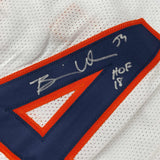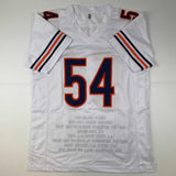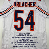 Autographed/Signed Brian Urlacher HOF 18 Chicago White Stat Football Jersey Beckett BAS COA