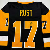 Autographed/Signed Bryan Rust Pittsburgh Black Hockey Jersey JSA COA