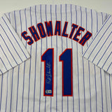 Autographed/Signed Buck Showalter New York Pinstripe Baseball Jersey Beckett BAS COA