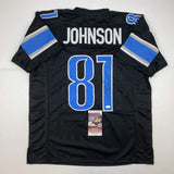 Autographed/Signed Calvin Johnson Detroit Black Football Jersey JSA COA
