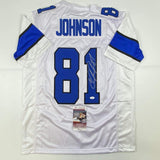 Autographed/Signed Calvin Johnson Detroit White Football Jersey JSA COA #2
