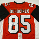 Autographed/Signed Chad Johnson Ochocinco Cincinnati Orange Retro Football Jersey JSA COA