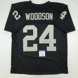 Autographed/Signed Charles Woodson Oakland Black Football Jersey Beckett BAS COA