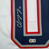 Autographed/Signed Christian Gonzalez New England White Football Jersey Beckett BAS COA