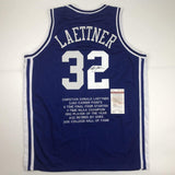 Autographed/Signed Christian Laettner Duke Blue Stat The Shot College Basketball Jersey JSA COA