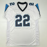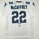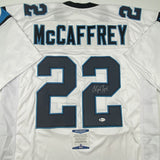 Autographed/Signed Christian McCaffrey Carolina White Football Jersey Beckett BAS COA