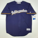 Autographed/Signed Christian Yelich 18 NL MVP Milwaukee Brewers Blue Cool Base Baseball Jersey JSA COA