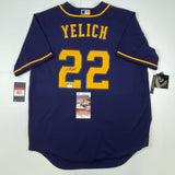 Autographed/Signed Christian Yelich Milwaukee Brewers Blue Alternate Baseball Jersey JSA COA