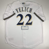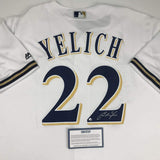 Autographed/Signed Christian Yelich Milwaukee Brewers White Cool Base Baseball Jersey Steiner Sports COA