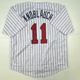 Autographed/Signed Chuck Knoblauch Minnesota Pinstripe Baseball Jersey Leaf Authentic COA