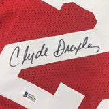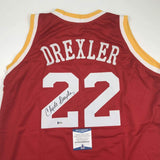Autographed/Signed Clyde Drexler Houston Red Basketball Jersey Beckett BAS COA