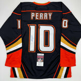 Autographed/Signed Corey Perry Anaheim Black Hockey Jersey JSA COA
