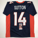 Autographed/Signed Courtland Sutton Denver Blue Football Jersey JSA COA