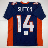 Autographed/Signed Courtland Sutton Denver Blue Football Jersey PSA/DNA COA