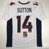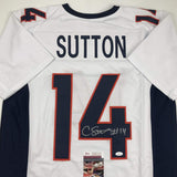 Autographed/Signed Courtland Sutton Denver White Football Jersey JSA COA