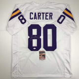 Autographed/Signed Cris Carter Minnesota White Football Jersey JSA COA