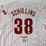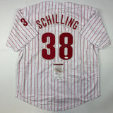 Autographed/Signed Curt Schilling Philadelphia Pinstripe Baseball Jersey JSA COA