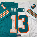Autographed/Signed Dan Marino Miami Split Teal/White Football Jersey JSA COA