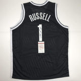 Autographed/Signed D'Angelo Russell Brooklyn Black Basketball Jersey JSA COA