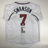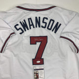 Autographed/Signed Dansby Swanson Atlanta White Baseball Jersey JSA COA