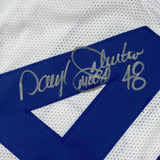 Autographed/Signed Daryl Moose Johnston Dallas White Football Jersey Beckett BAS COA