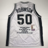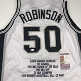 Autographed/Signed David Robinson San Antonio White Stat Basketball Jersey JSA COA