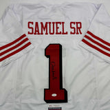 Autographed/Signed Deebo Samuel Sr. #1 San Francisco White Alternate Football Jersey JSA COA