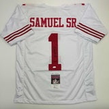 Autographed/Signed Deebo Samuel Sr. #1 San Francisco White Football Jersey JSA COA