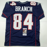 Autographed/Signed Deion Branch #84 New England Blue Football Jersey JSA COA