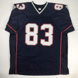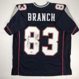 Autographed/Signed Deion Branch Super Bowl XXXIX MVP New England Blue Football Jersey Tristar COA