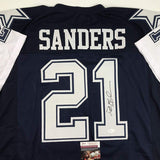 Autographed/Signed Deion Sanders Dallas Dark Blue Football Jersey JSA COA