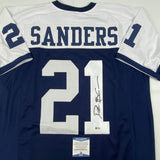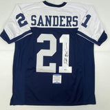 Autographed/Signed Deion Sanders Dallas Thanksgiving Day Football Jersey Beckett BAS COA