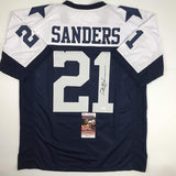 Autographed/Signed Deion Sanders Dallas Thanksgiving Day Football Jersey JSA COA