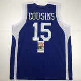 Autographed/Signed DeMarcus Cousins Kentucky Blue College Basketball Jersey JSA COA