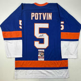 Autographed/Signed Denis Potvin New York Blue Hockey Jersey JSA COA